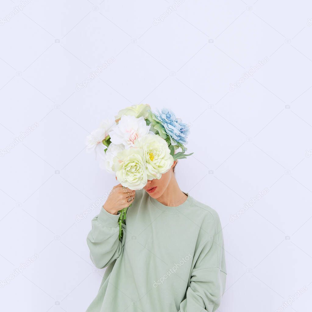 Фото с букетом без лица . Девушки на аву без лица с цветами . . .