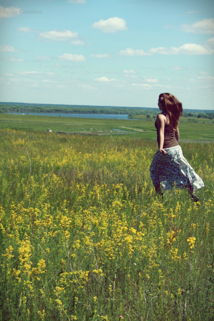 Фото Девушки На Лугу Спиной