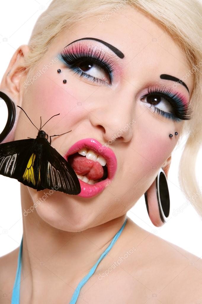 Фото Девушки С Бабочкой На Лице