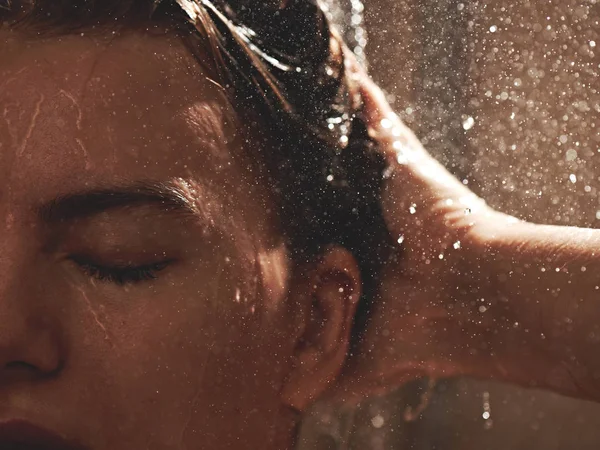 Красота . Женщина с водой на лице и теле . Уход за кожей . . .