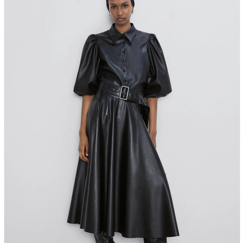 Модные кожаные платья 2021-2022 - фото, фасоны, с чем . . .