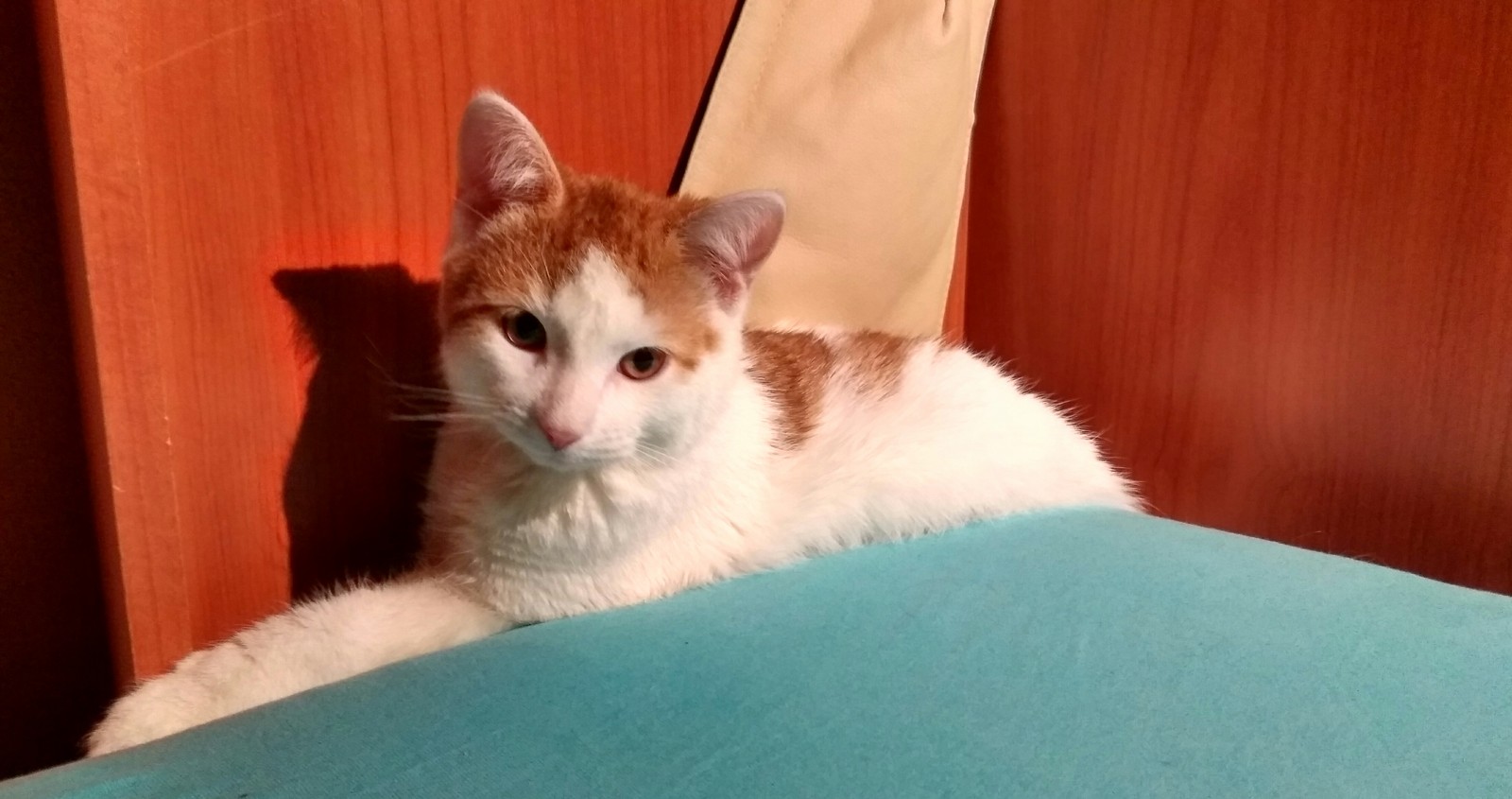 Фото довольного белого кота . Милые котята)) Пока ты не известно где шляешься, я тебе пиццу подогрел .