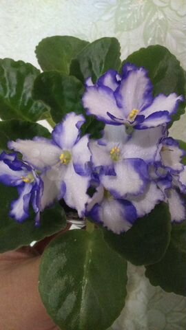 Фиалка, описание и фото Arctic Frost (S . Sorano) . . . Каждое цветение этой фиалки разное за счет количества участков с синей окраской . Бывает, зацветает она практически полностью белая, только намёк . . .