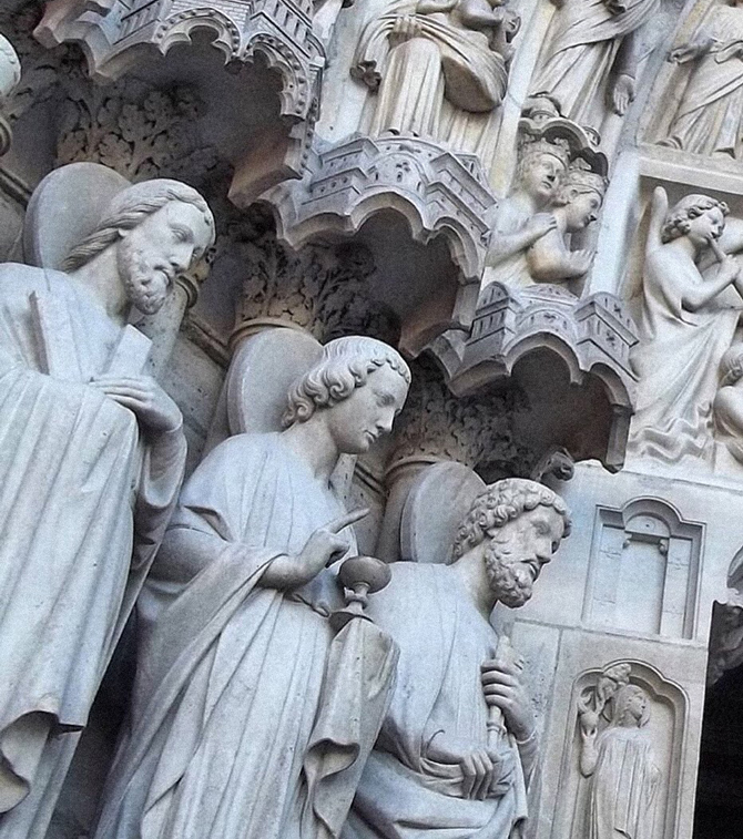 Статуи библейских фигур на фасаде Нотр-Дам были обезглавлены, из-за ложного убеждения, что они были статуями французских королей .