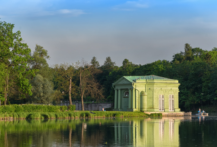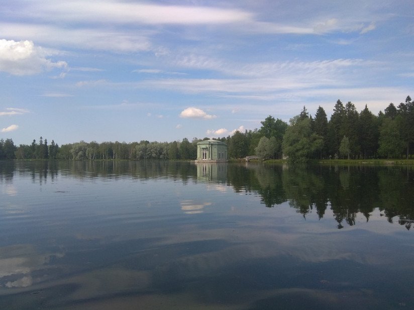 Дворцовый парк в Гатчине: озера, Березовый дом, павильон . . .