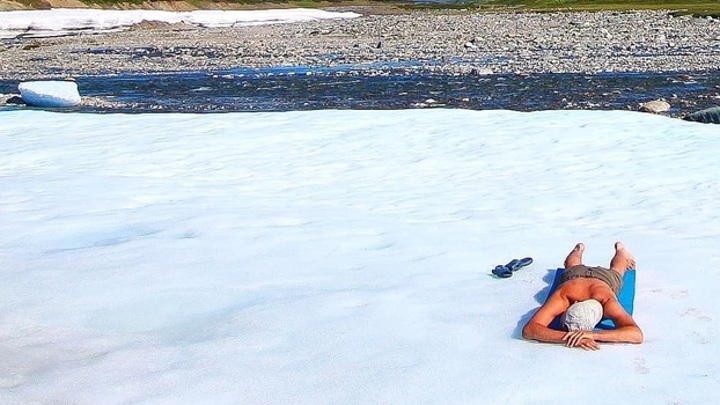 В своем Инстаграм-аккаунте 51-летний Горбунов опубликовал фото в солнцезащитных очках и без верхней одежды . В руках у него красовался кусочек арбуза . Фотография сделана в беседке, обтянутой белым прозрачным полотном .