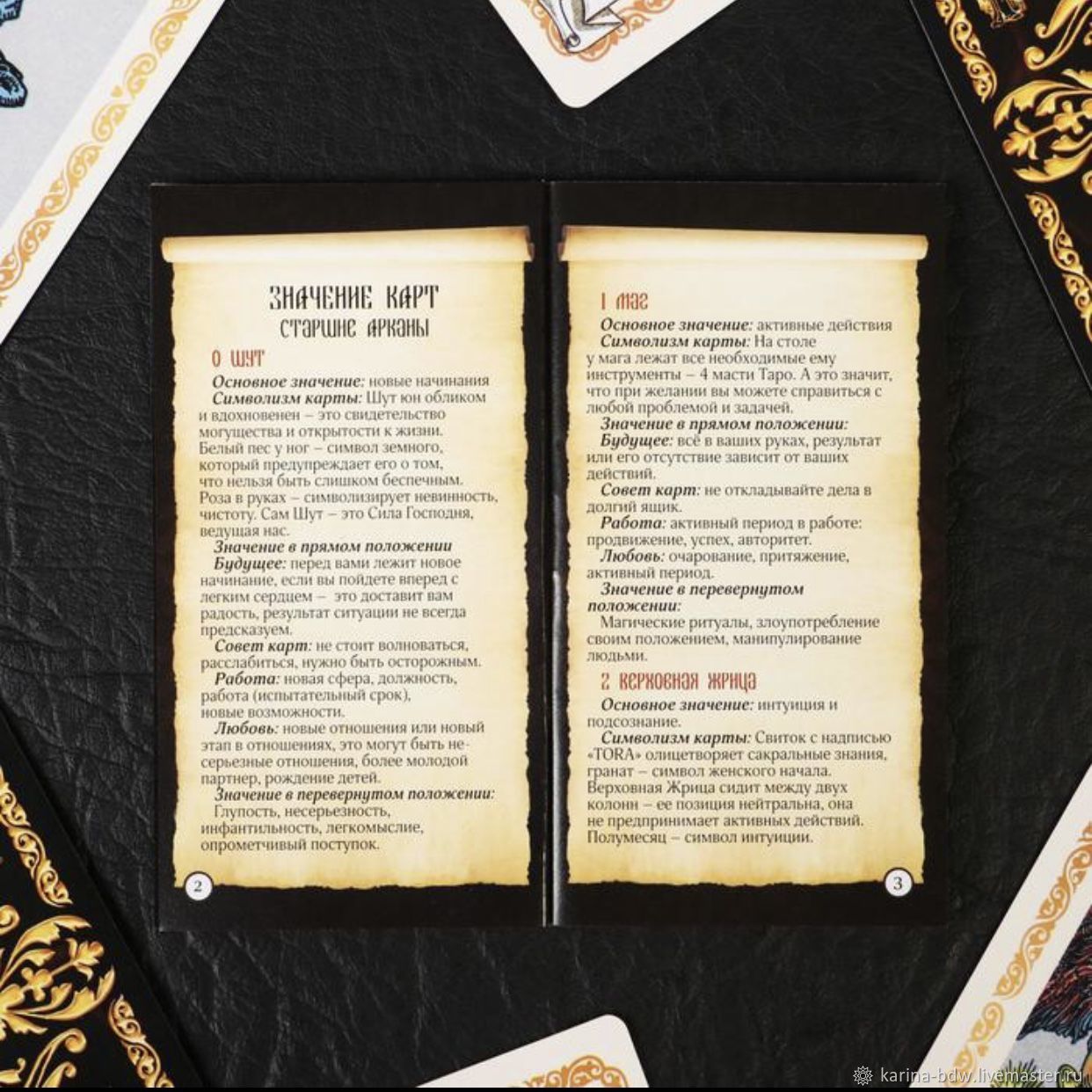 Карты Таро на столе . Таро Кроули Шут . Фон для карт Таро . The Akashic Tarot Таро Акаши . Карты Таро заставка .