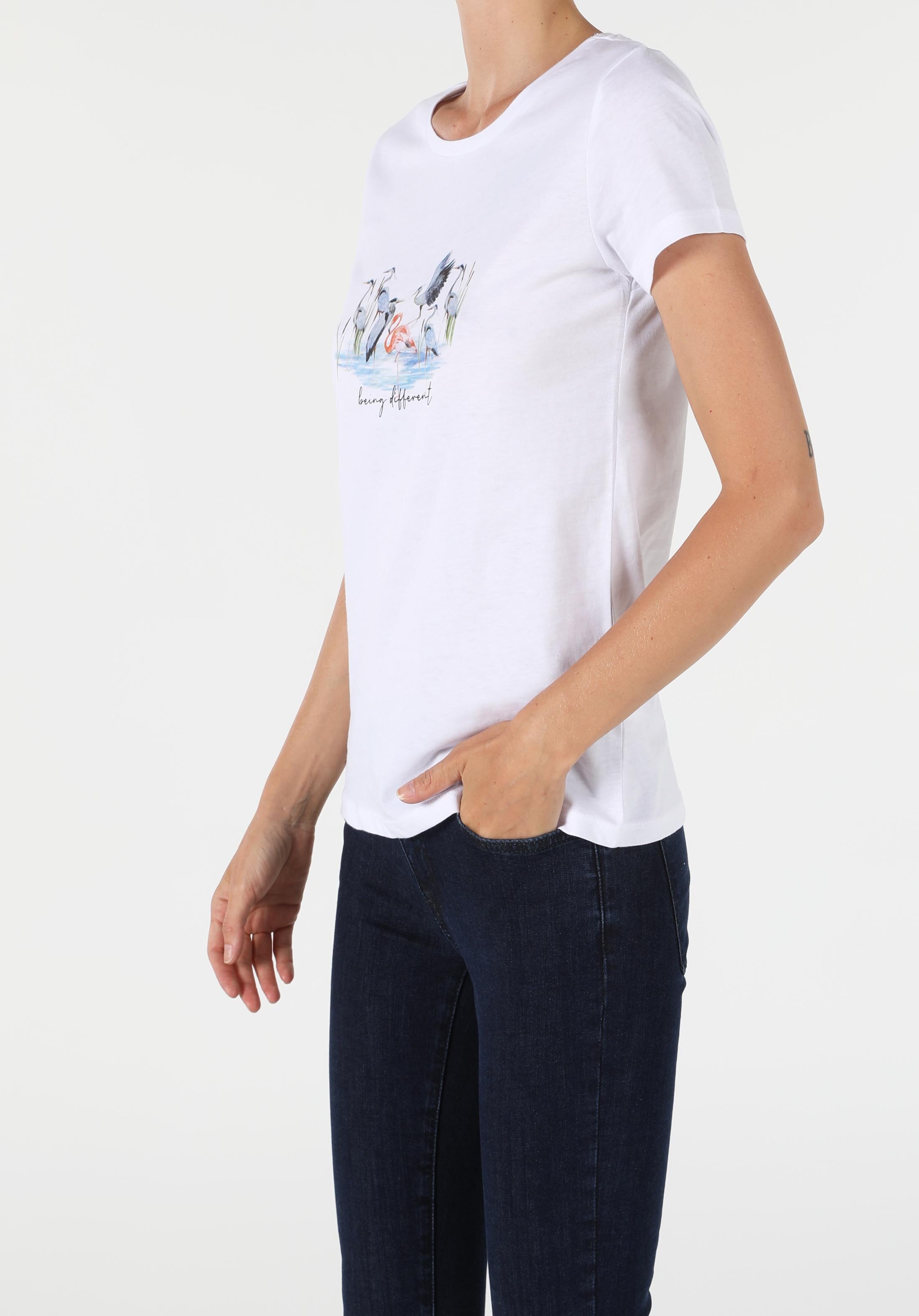 Серед коротких футболок можна знайти варіанти з аплікаціями художніх репродукцій полотен, імітаціями об'ємних татуювань . Нікуди не поділися з моди тропічні пейзажі, райські птахи .