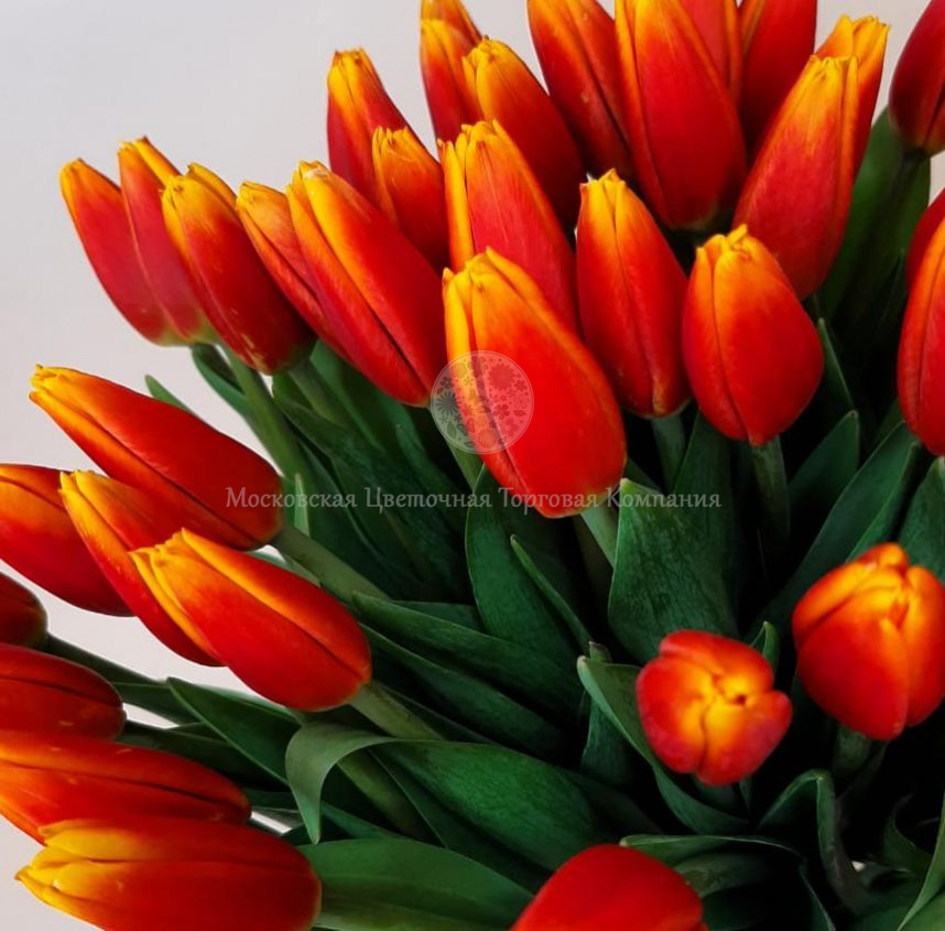 Букет из 41 красно-желтого тюльпана . Купить цветы .