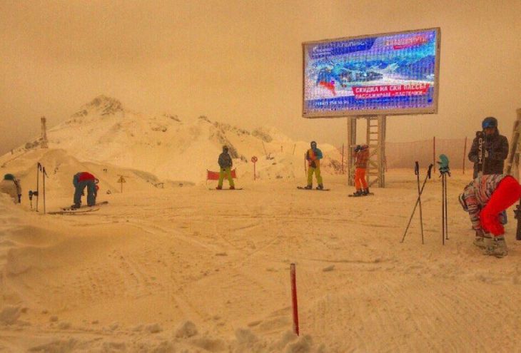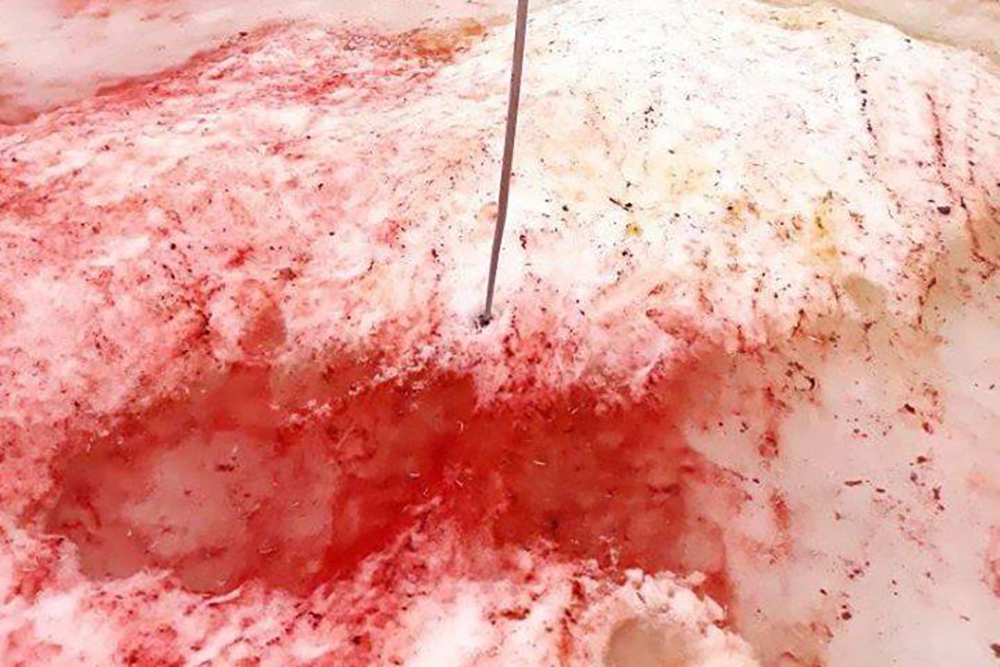 В Альпах снег окрасился в кроваво-красный цвет . Фото