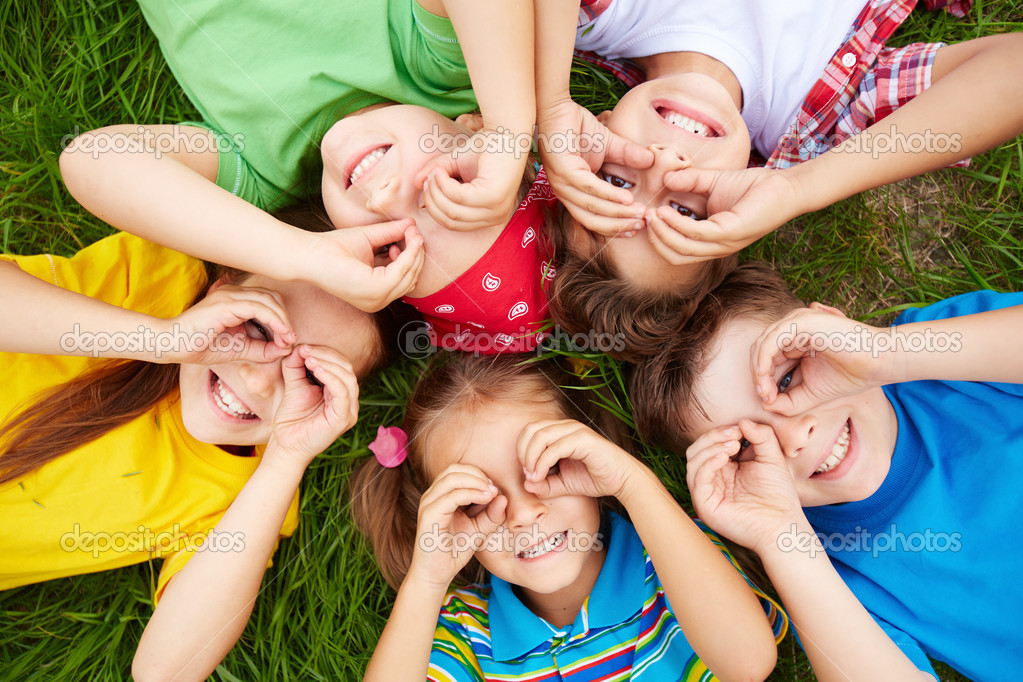 Скачайте стоковую фотографию Группа милых детей, лежащих на зеленой траве - 46321581 из многомилионной коллекции лицензионных фотографий, иллюстраций и векторных изображений Depositphotos .