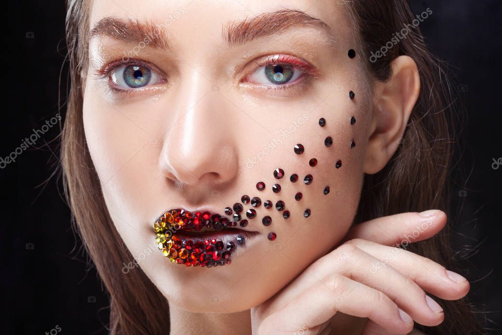 Фото Портрет девушки с падающим на лицо радужным . . . Фото Восточная красавица с голубыми глазами с украшением на . . . Фото Портрет девушки с магическим знаком на лбу и рисунком на щеке, . . .