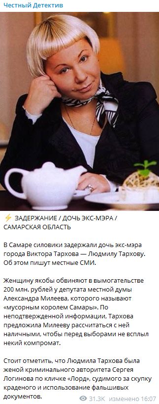 Фото: pixabay .com Сама Людмила Тархова была замужем за криминальным авторитетом Сергеем Логиновым по кличке Лорд . В Самаре суд продлил домашний арест Людмилы Тарховой, . . .