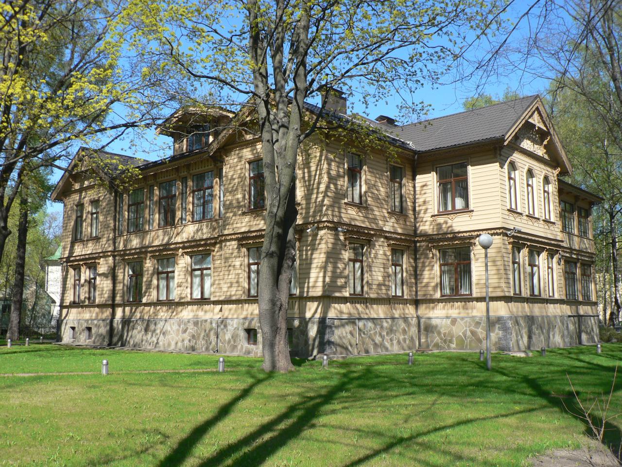 Она разместилась во дворах на набережной Малой Невки с видом на парк . Прежде на месте дачи, во дворе дома 33 по набережной Малой Невки, стояли четыре хозяйственные постройки — склады и гараж .