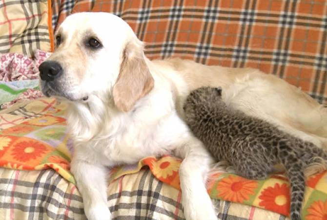 Собака потеряла своих щенков, но взяла под опеку . . .