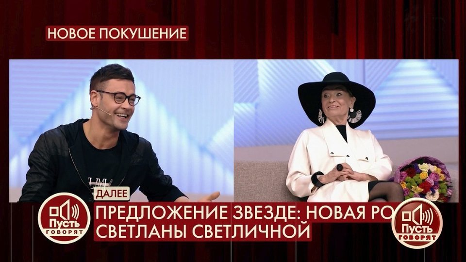 Тем временем Андрей Малахов опубликовал фото с пропавшей Светличной . Они позировали в студии его передачи «Прямой эфир» . Актриса предстала в шляпке и сдержанном черном платье .