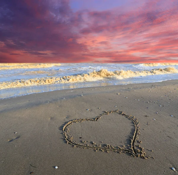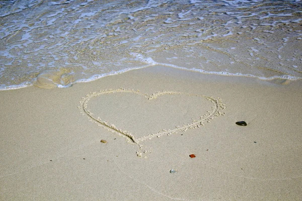 Сердце со стрелкой, как знак любви, нарисованное на берегу моря, с t Рисунок сердец на пляже Два сердца на пляже
