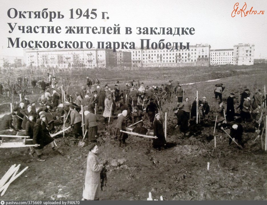 История Московского Парка Победы в Петербурге началась 7 октября 1945 года . В этот день на территорию, ограниченную улицами Кузнецовская и Бассейная, а также проспектами Московским и Юрия Гагарина, пришли горожане . . .