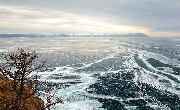 Фото озера Байкал . . . также на льду можно увидеть загадочные темные кольца . Еще ученым удалось установить, что Байкал скрывает в своих глубинах высочайшие горы планеты, высотой 7 км . . .
