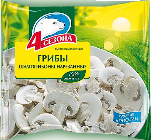 Грибы шампиньоны нарезанные быстрозамороженные от 4 сезона ⫸ прекрасный продукт для быстрого приготовления огромного количества вкуснейших блюд .