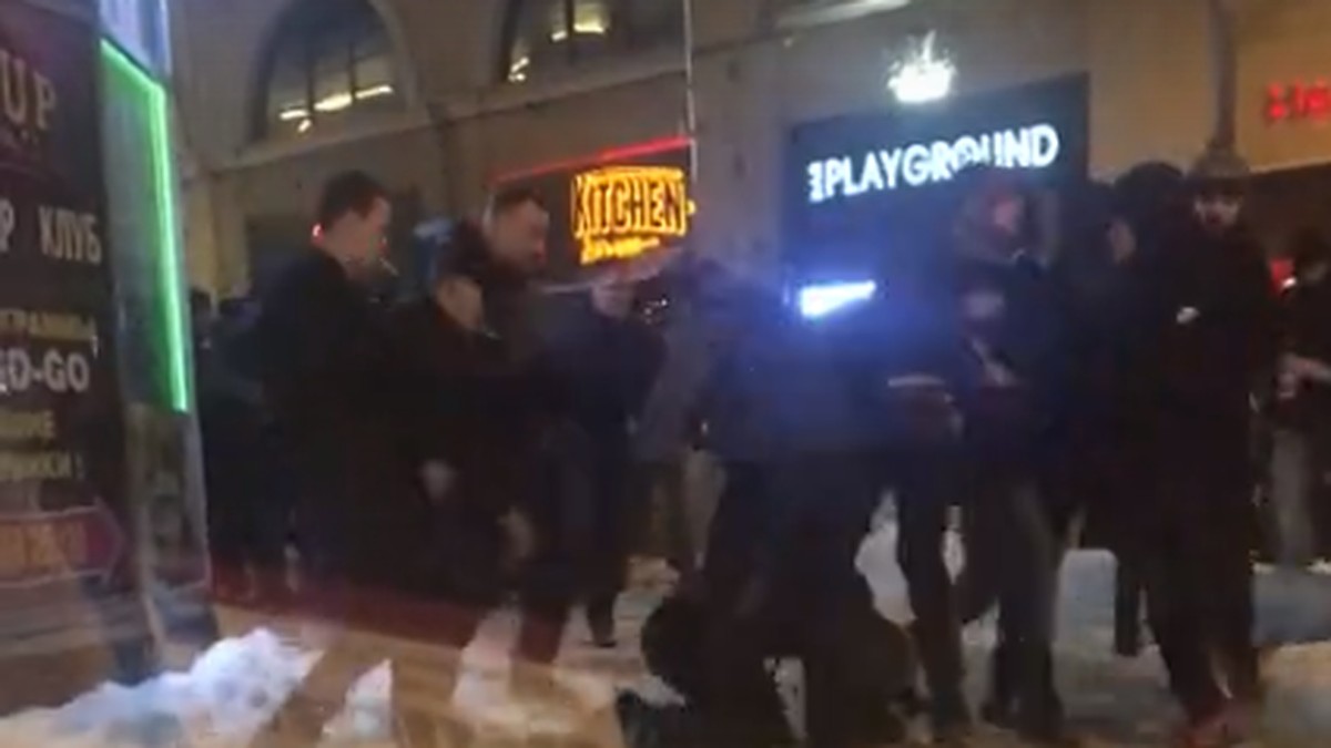 С приходом проверки из злосчастного бара на Конюшенной площади выдавило никак не меньше 300 человек . Еще столько же, если не больше, в этот момент дожидалось своей очереди на улице .