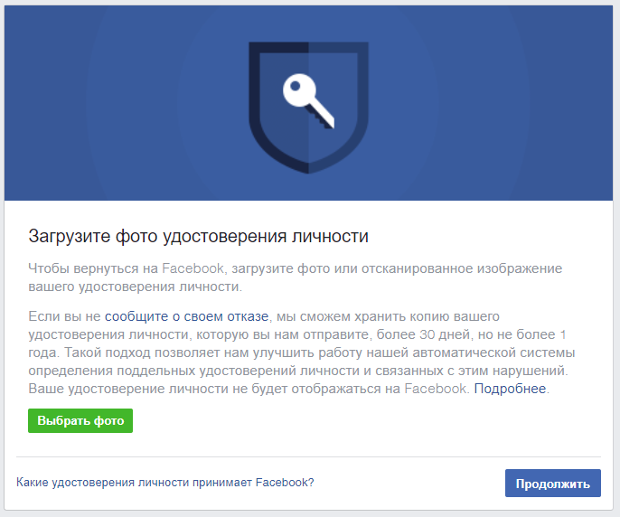 Фейсбук требует удостоверение личности . Что делать?