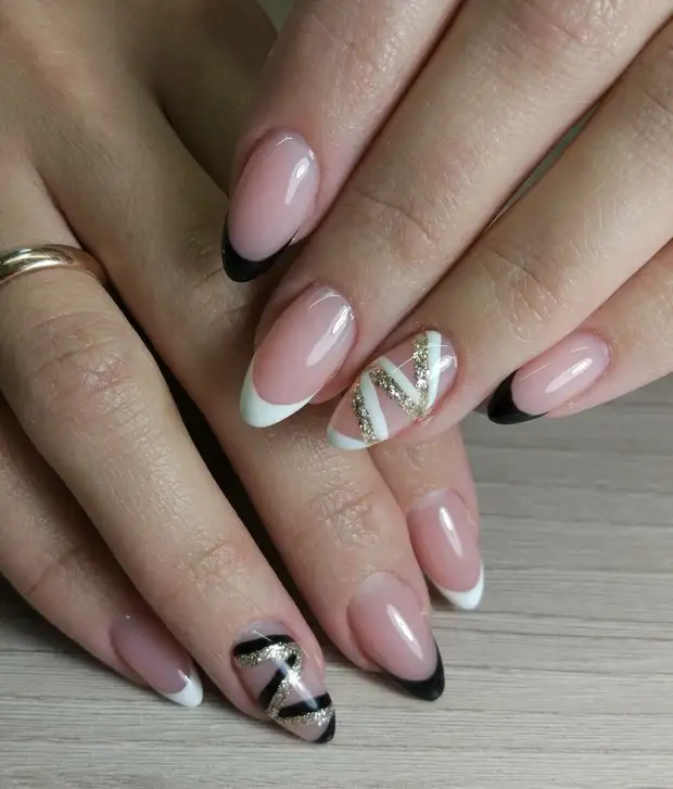 Френч На Черных Ногтях Фото