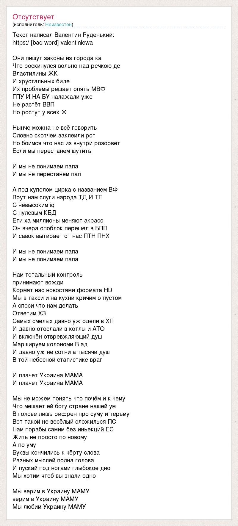 Песня на День матери «Мамочка милая, мамочка моя» — текст . . . С твоим фото в руках, сердце в пустоте, Твоя улыбка мне напоминает те дни, . . . Напрасно не верим в Бога - . . .