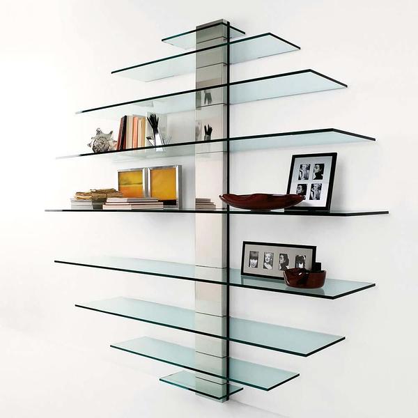 Стеклянные полки на стене в интерьере . У нас вы можете заказать стеклянные книжные полки, а также полки для самых разных целей: под аудио/тв технику, награды, цветы и прочее .
