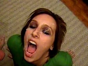 Una giovane con la faccia ricoperta di sborro
