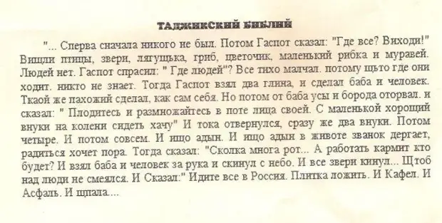 фото-приколы; . . . В Таджикистане катастрофа, погибло 300 тысяч таджиков . Америка послала денег, Германия послала продукты, Россия — 300 тысяч таджиков . 0 . 0 .