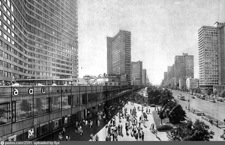 Фото 1969 года . Проспект Калинина, ныне улица Новый Арбат . На момент постройки проспект выглядел достаточно модно и современно, по сравнению с остальной городской застройкой . . .