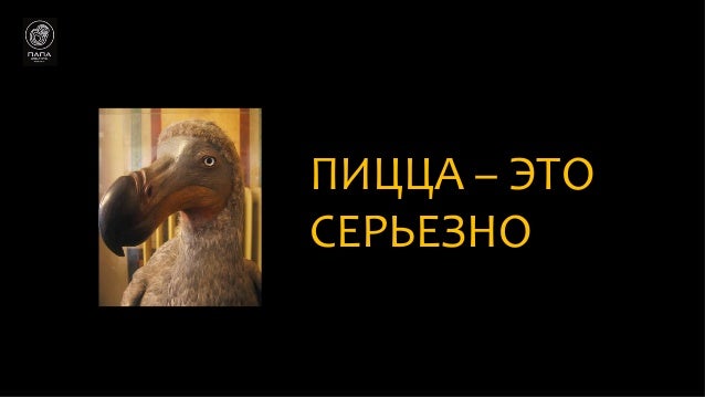 Фирменная пицца Додо на тонком тесте . Только без грибов . Можно исключить ненужные ингредиенты . Пиццу режут на 8 кусочков, а не на шесть, как это бывает обычно . Что за птица Додо, которую использует на логотипе создатель сети Федор Овчинников?