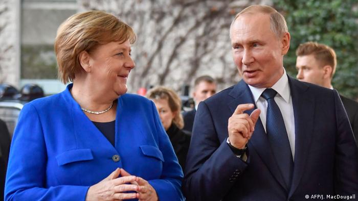 В предыдущий раз Путин и Меркель лично виделись 19 января 2020 года в Берлине на . . . Подпись к фото,