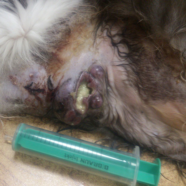 Нашли у кошки на молочной железе новообразование с выделениями из соска гнойного характера . Немедленно обратились к ветеринару, после чего удалили гряду молочных желез и матку с яичниками .