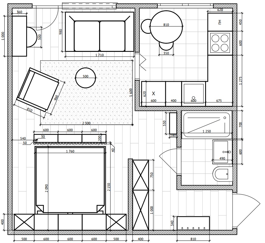 Варианты расстановки мебели в однокомнатной квартире . . .