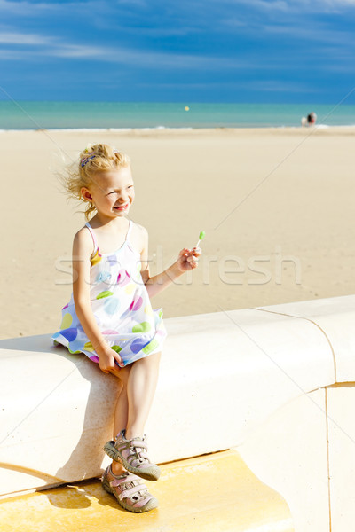 фото около Маленькие девочки на пляже моря на лете . изображение насчитывающей волосы, учить, выучьте - 34059365