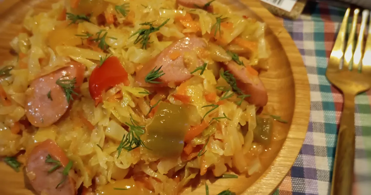 Фото Рецепт Тушеной Капусты С Колбасой