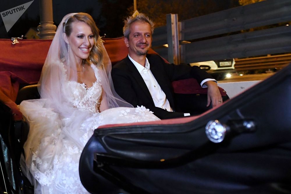 Для свадьбы Тина выбрала два белоснежных платья: первое - с длинным рукавом, шлейфом и открытой спинкой, второе - короткое, к которому невеста подобрала кроссовки . Фату красавица не одевала .