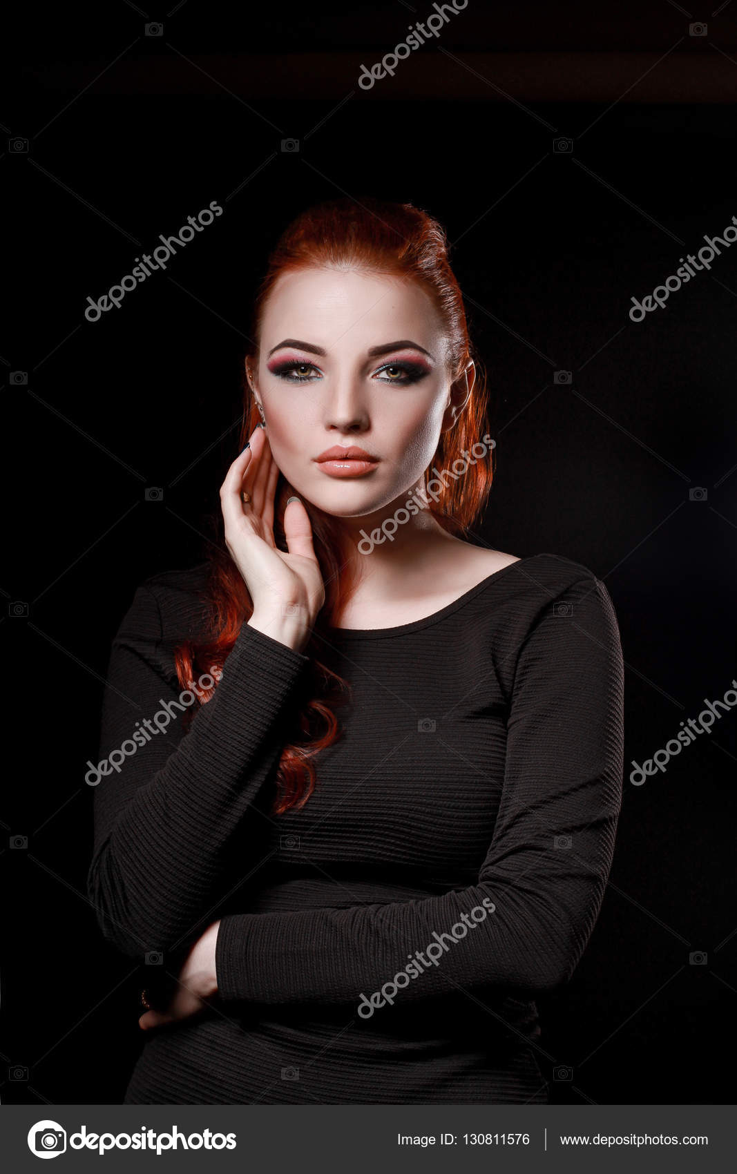Девушка черный фон: cтоковые фото, картинки, изображения по лицензии роялти- . . . красная помада с черными длинными рукавами свитер с водолазкой на черном фоне .