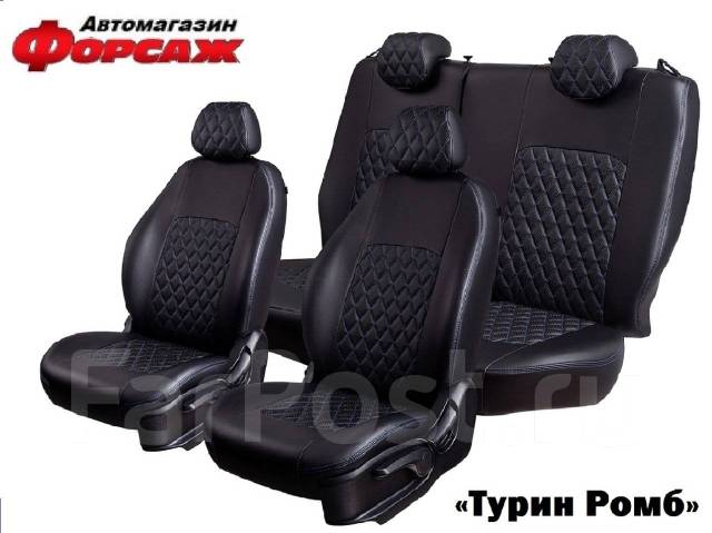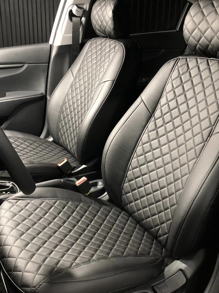 Авточехлы на сиденья для Hyundai Solaris 2010-2017 (хэтчбэк) черная экокожа, ромб (клетка), автомобильные чехлы на все сиденья и подголовники Хендай Солярис, задняя спинка раздельная . 5 отзывов . . .