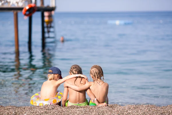 Фото: дети на море . Дети, сидя на пляже с цветом шаров . . .