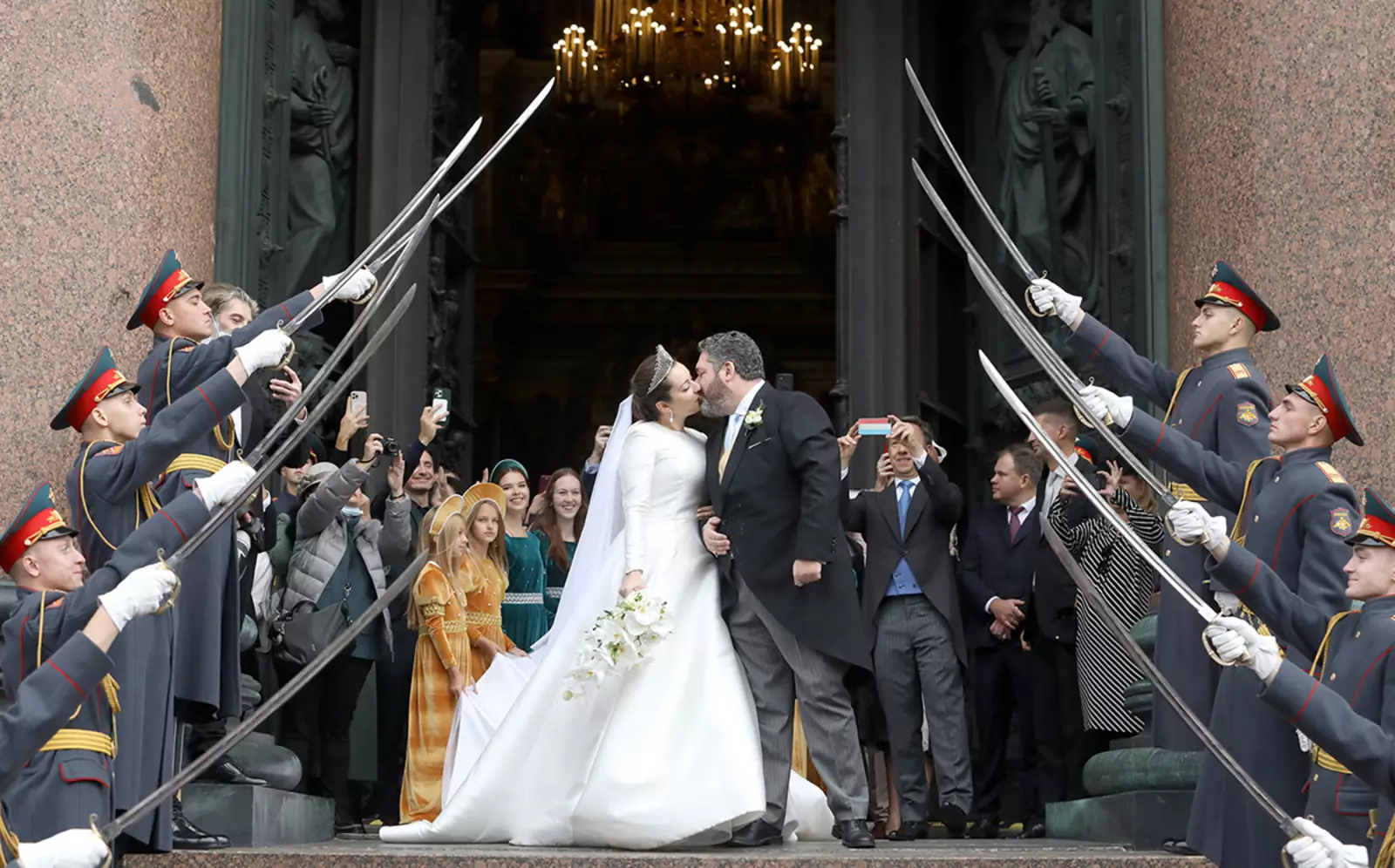 27428 . Икра, гармонь, балет . Как потомки Романовых отметили свадьбу . Свадебные торжества в Петербурге длились три дня . Российский Императорский Дом . У Западных ворот Исаакиевского собора . . .