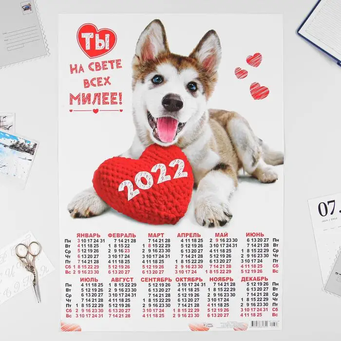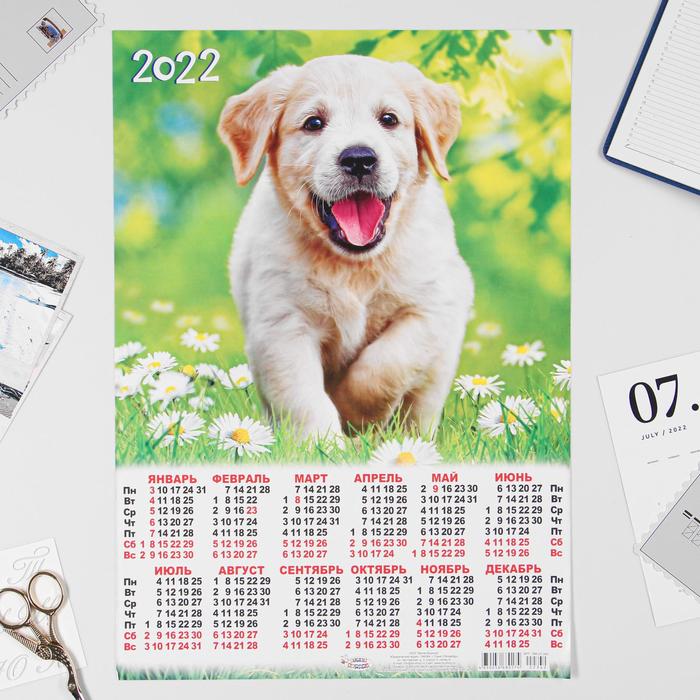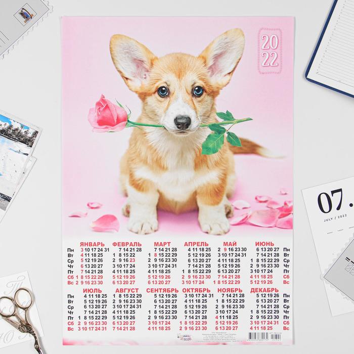 Календарь настенный листовой "Собаки" на 2022 год . тематика: животные, птицы и насекомые . размер: А2 (420*594 мм) .