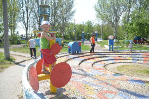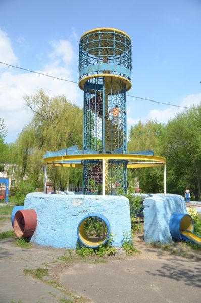 Житель Донецка прошелся по Путиловке, чтобы вы увидели все своими глазами . Детская площадка, построенная в 1970-х, в разгар увлечения всего Советского союза космосом, на соответствующие мотивы .