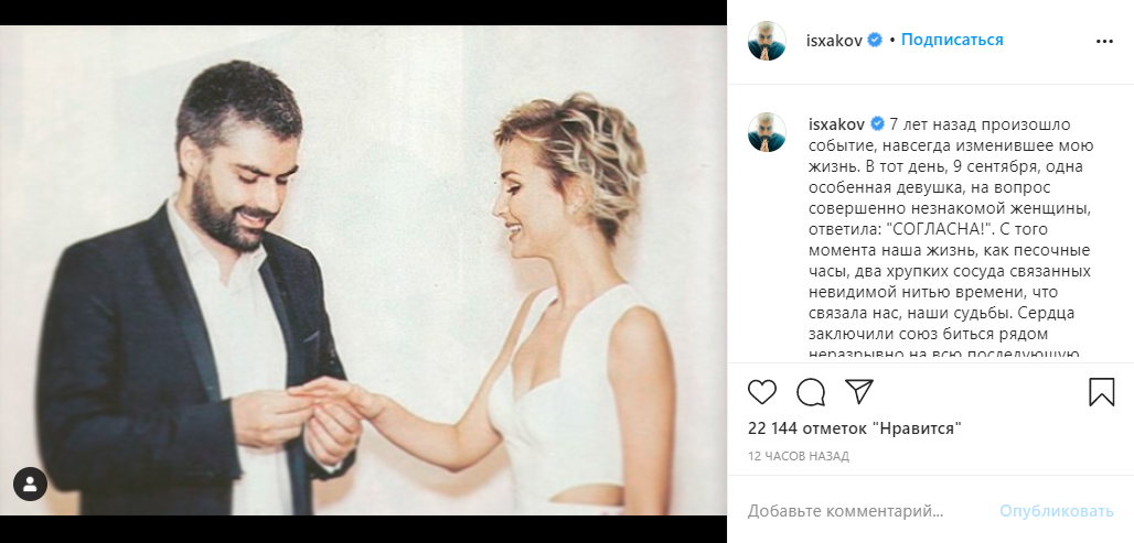 Экс-муж Полины Гагариной показал архивное фото со свадьбы . 42-летний Дмитрий Исхаков показал архивное фото со свадьбы с Полиной Гагариной . Супруги поженились 9 сентября 2014-го и в этом году . . .