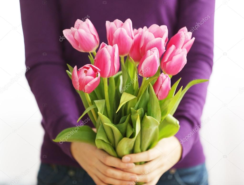 Девушка с тюльпанами картинки, стоковые фото . . . | Depositphotos