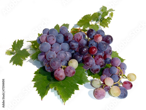 Красный виноград с зеленым листом на белом фоне . . .