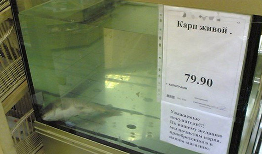 Живого карпа — продукт советской аквакультуры — можно было купить по цене 70-80 коп/кг, принести его домой в пакете с водой и пустить поплавать в ванне перед отправкой на сковородку .