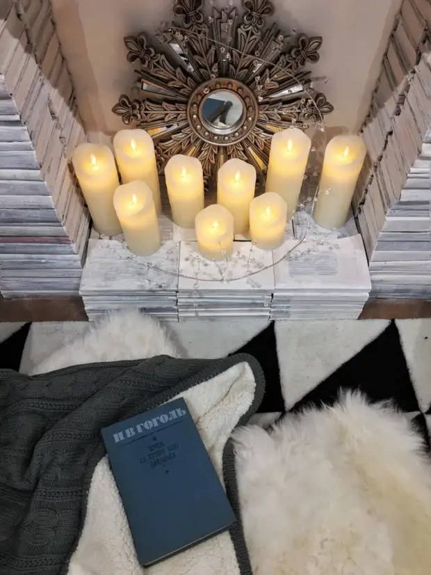 Фотозона в квартире: праздничный декоративный камин своими руками Из материалов вам понадобятся старые книги, две полки и несколько крепежей .